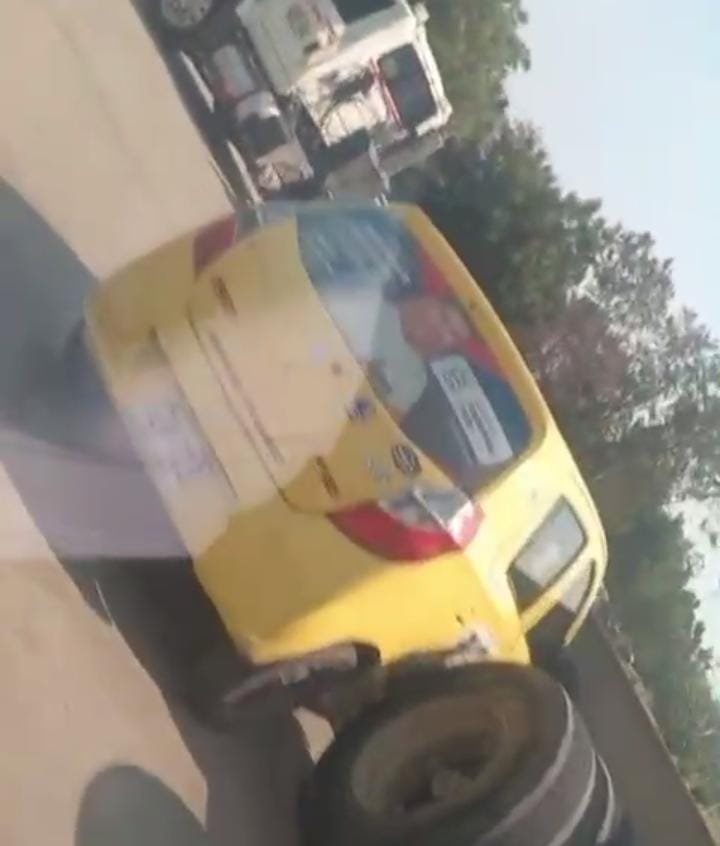 Taxista sufre descompensación y choca contra una tractomula en estación de gasolina