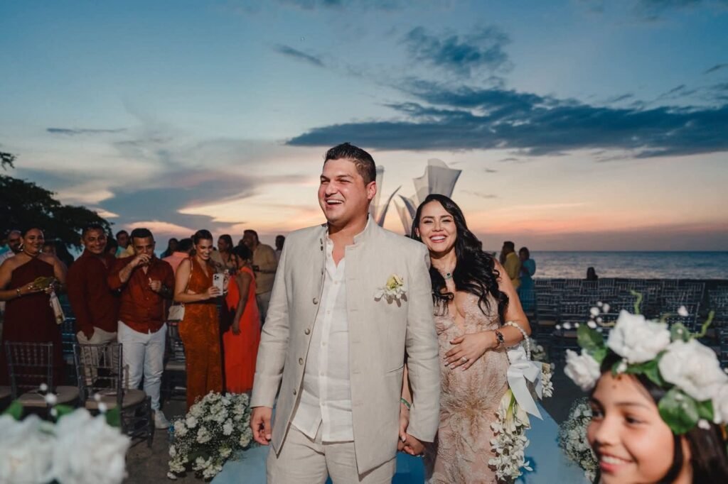 La ceremonia se llevó a cabo en Santa Marta, en medio del sonido del mar y un atardecer que sirvió de marco para la celebración de su décimo aniversario. Sin cámaras de televisión ni despliegue mediático, la pareja decidió sellar su amor en un acto privado, rodeados de familiares y amigos cercanos.