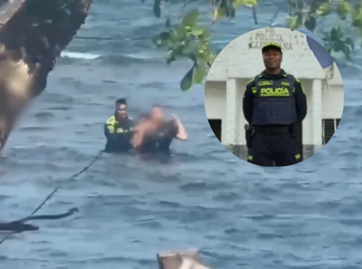 El patrullero arriesgó su vida para rescatar a dos personas que eran arrastradas por la corriente en una playa del Chocó. La rápida reacción evitó una tragedia.